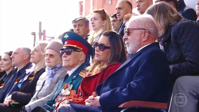 Vladimir Putin, ao centro, com o presidente da China, Xi Jinping à sua esquerda; Emomali Rakhmon, presidente do Tajiquistão à sua direita; e Sassou Nguesso, presidente da República do Congo, às suas costas — Foto: Yuri Kochetkov/Pool Photo via AP