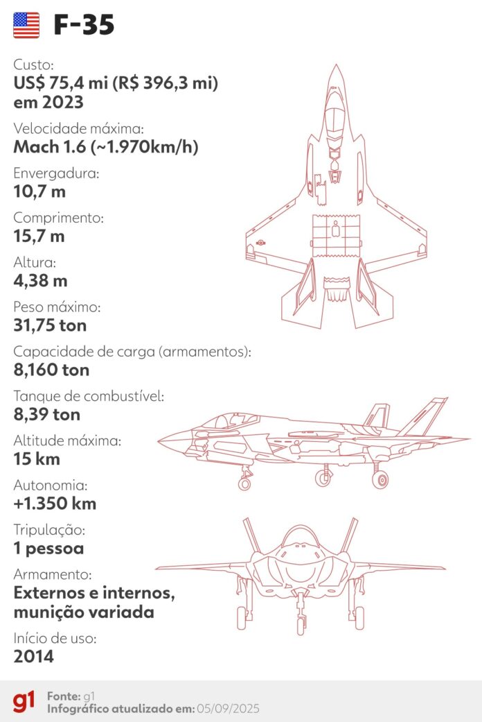 Os EUA operam o F-35A Lightning II. De acordo com a própria Força Aérea americana, trata-se de “um caça multifuncional ágil, versátil, de alto desempenho e com capacidade para 9g que combina furtividade, fusão de sensores e consciência situacional sem precedentes”.