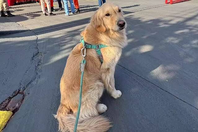 Golden do projeto Cão Herói, Cão Amigo atua como “repórter” e narra o evento com homenagens