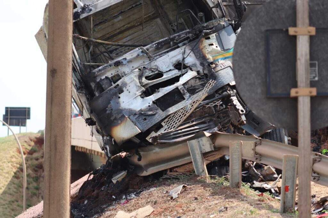 Conforme já publicado, a carreta de Daniel invadiu a pista contrária ao tentar desviar de outro caminhão que não respeitou a placa de “Pare” na alça de acesso. A colisão provocou explosão e incêndio na cabine, que ficou deformada e prendeu o motorista até a chegada das equipes de resgate.
