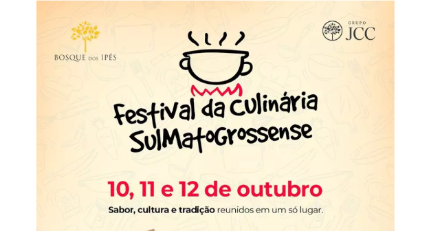 Entre os dias 10 e 12 de outubro, Campo Grande recebe mais uma edição do Festival da Culinária Sul-Mato-Grossense, evento que promete valorizar a gastronomia regional e proporcionar momentos de cultura e lazer para toda a família. A programação acontece a partir das 18h, no estacionamento – acesso A – do Shopping Bosque dos Ipês, com entrada gratuita.